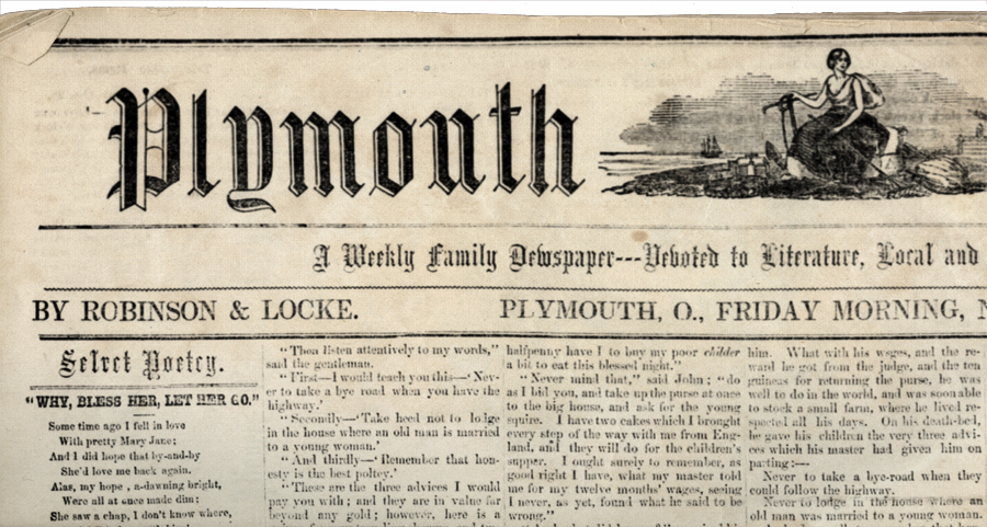He landed in Plymouth in 1852 and, eager to bind his various newspaper experiences together into something meaningful, Locke and his pal scrounged up $42 and started the Plymouth Advertiser.