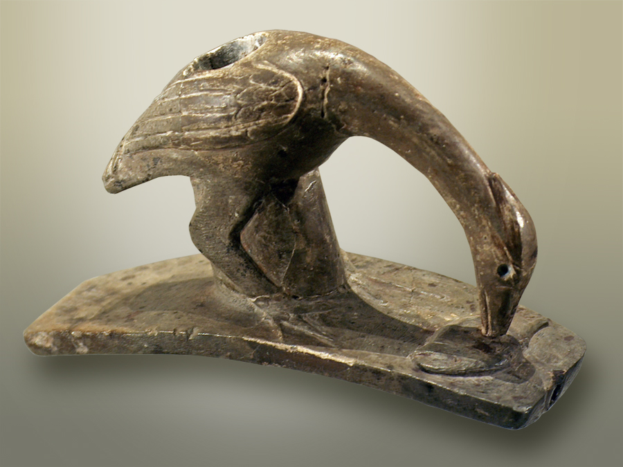 Still farther back on the timeline were the tribal folks known to us today as the Hopewell, whose society from 200 BC to 500 AD produced heron artworks like this elegantly crafted pipe.