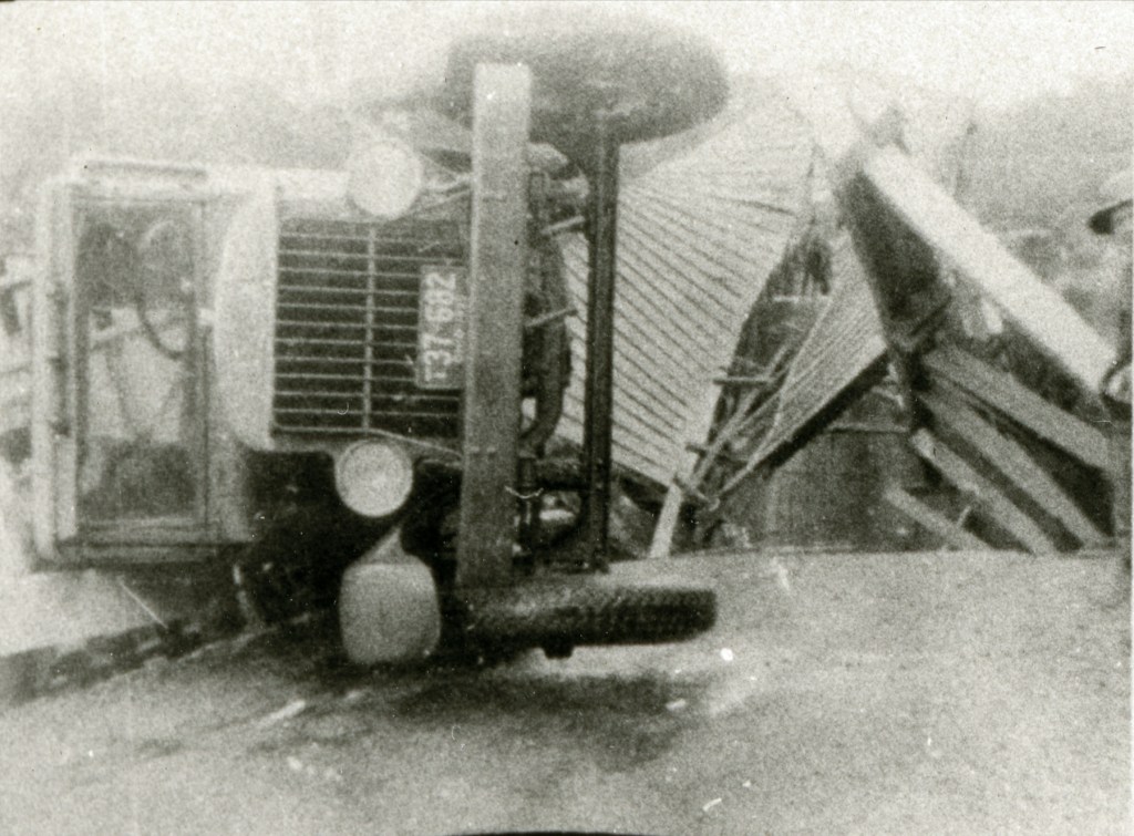 But one day in 1930 the motor vehicle that slammed across The Hero was a truck hauling a load of pickles…apparently very heavy pickles.