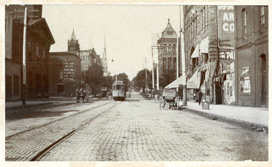 The tracks for this new electric transportation system were laid initially on Main Street and Park Avenue West during the summer of 1887. The lines spanned 4.5 miles of city blocks.