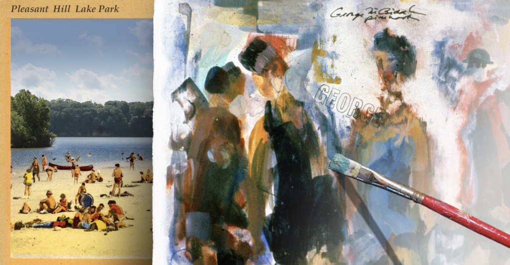 One summer in July a handful of painters showed up on the beach at Pleasant Hill Lake Park, and set to work sketching the folks swimming and sunning. As artists who were schooled in the classical traditions—who knew their art history—they were excited to try their skills in an art motif that has been traditional since the 17th century: creating a composition of an outdoor ‘landscape with bathers.’