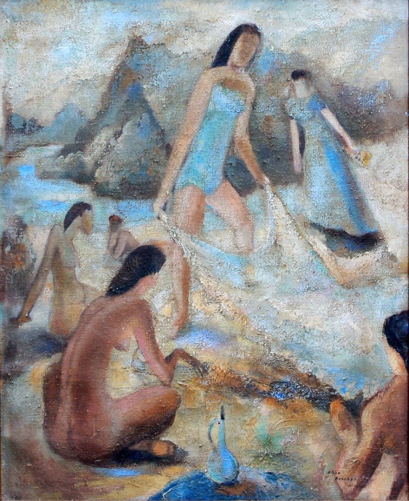 Dating back before the European Modernists and Impressionist, and extending through history up to the American Realists and beyond, every new wave of artists has found a contemporary way to interpret the classical image of people relaxing by the waterside. In mid-20th century, the Richland County School formally embraced this tradition at Pleasant Hill.