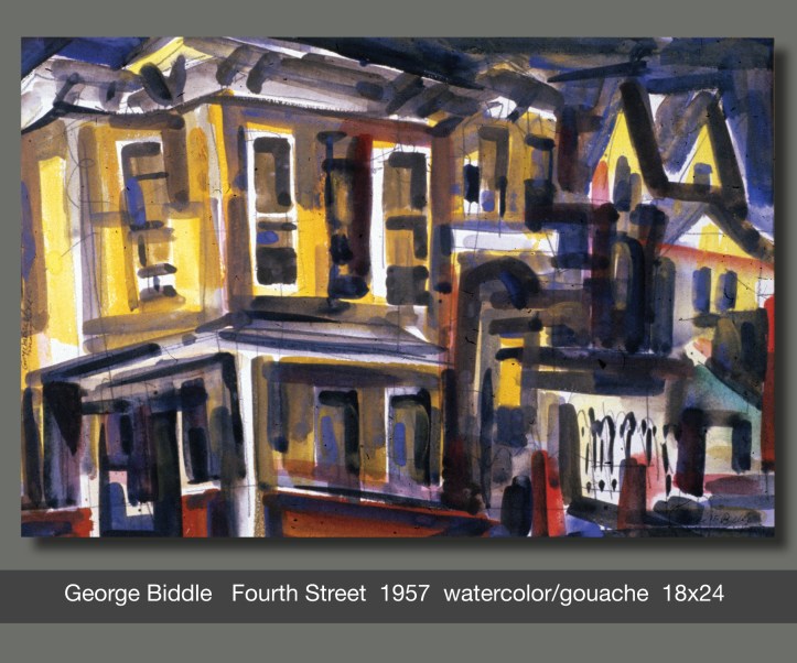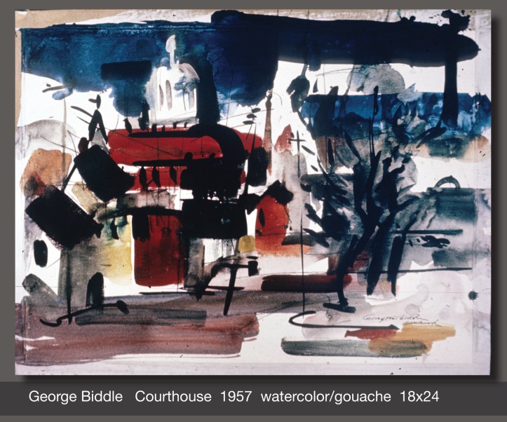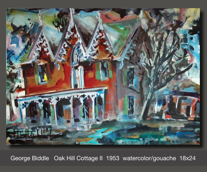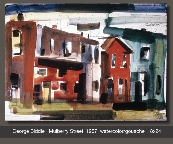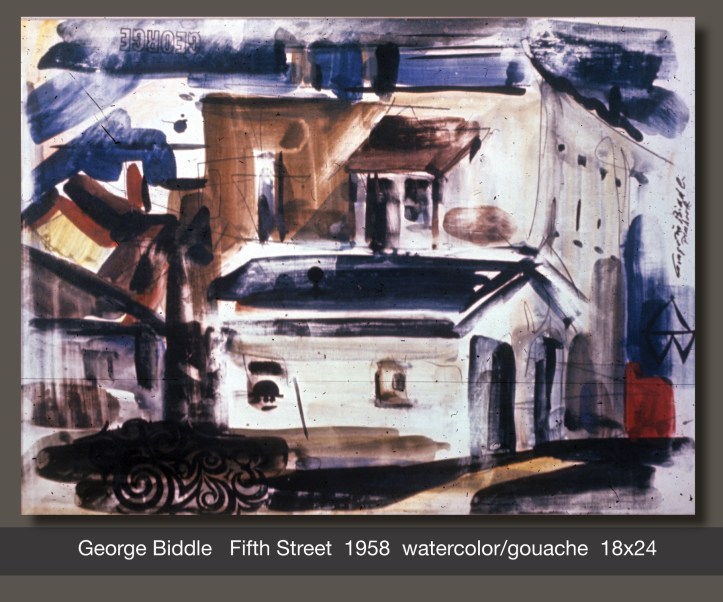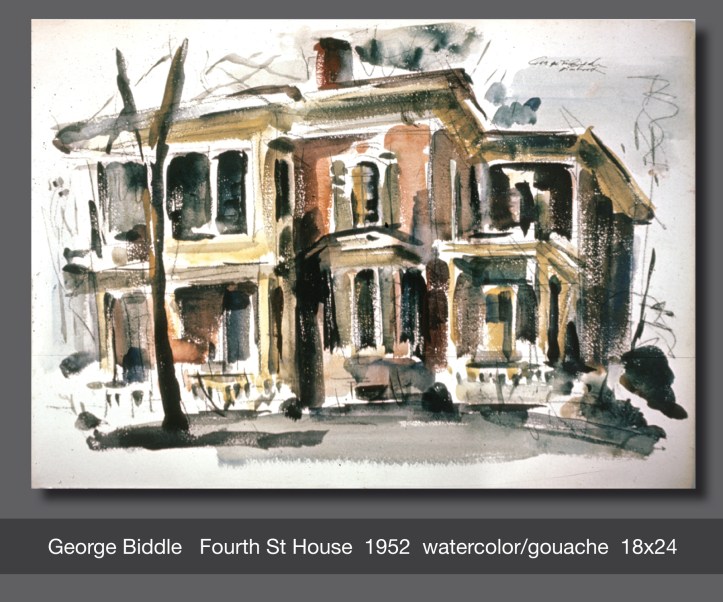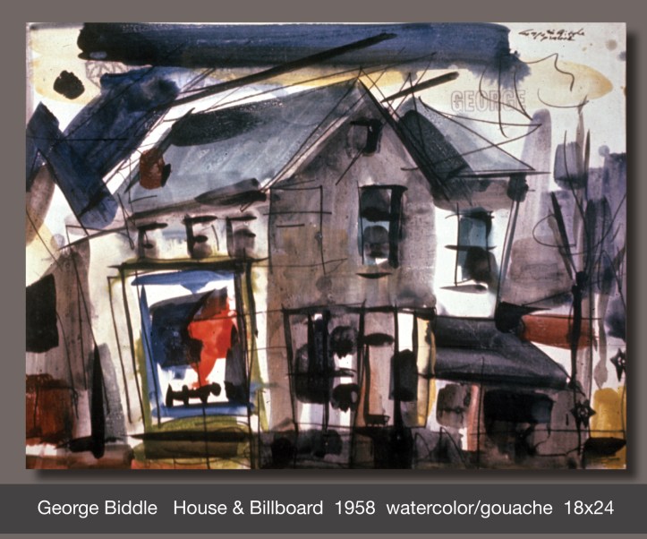 Studying the paintings of George Biddle is like reviewing the evolution of Art History in America. His earliest works are realistic, like traditional representational art found in America throughout the 1800s. With experience and education his paintings became looser and more impressionistic like the styles popular in the art world of the 1920s and ’30s.