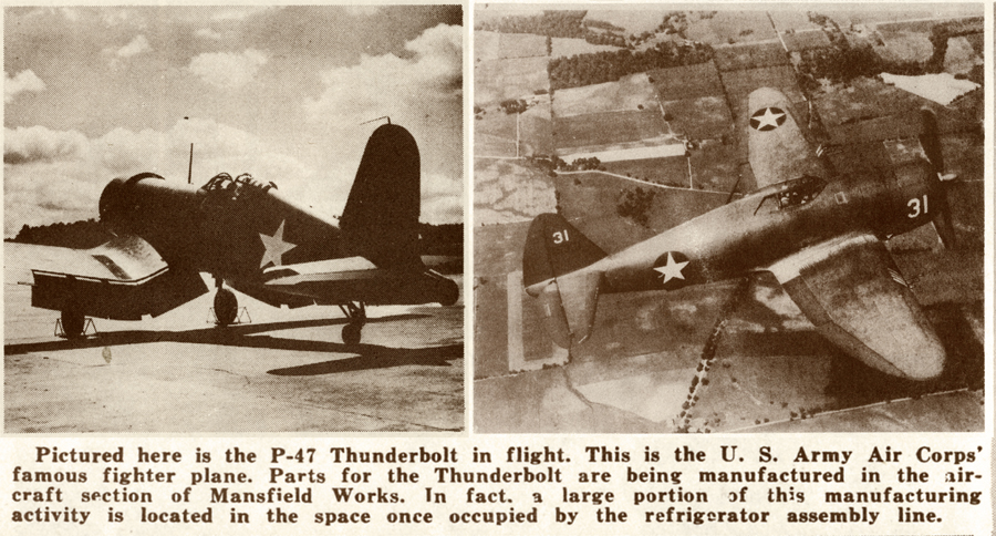 The refrigerator department was retooled to make parts for the Army Air Corps P-47 Thunderbolt planes.