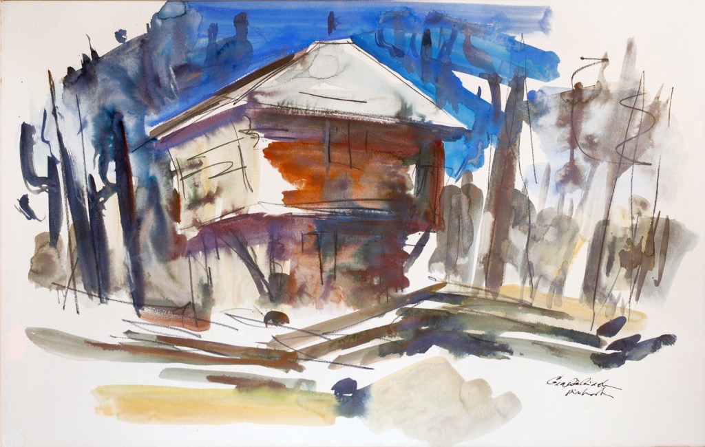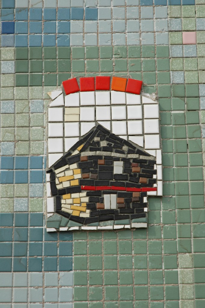Among the representations of the Blockhouse from that time is this modernistic rendering created on the front of a on Park Avenue West at Weldon Avenue.