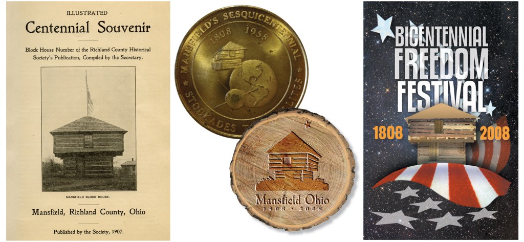 There is really only one iconic image that has consistently represented Mansfield throughout the greatest part of its history, and that is the Blockhouse. There are other very familiar likenesses of places that can serve as a community identifier—like Kingwood or OSR—and some significant historic characters like Johnny Appleseed whose symbolic representation evokes the spirit of Mansfield, but there are none that can compare with the city’s long association with its first seminal landmark.