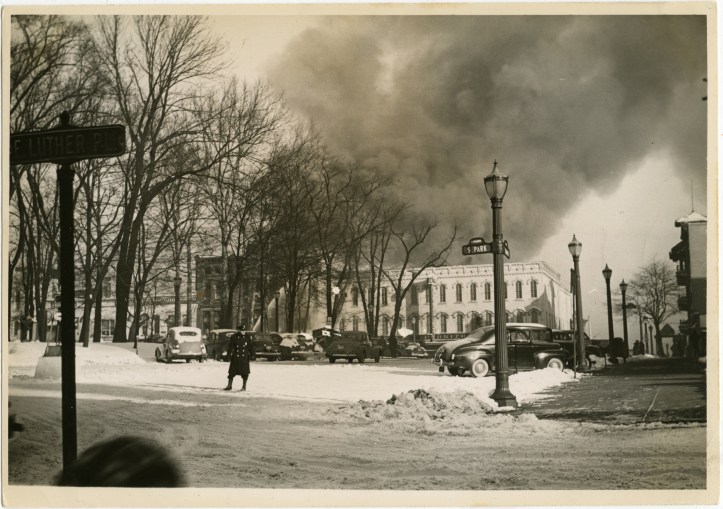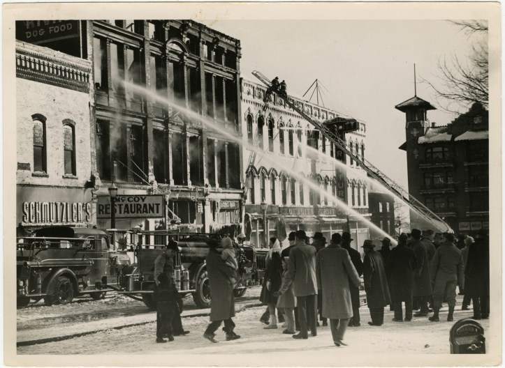 The famous Fire of 1944 broke out on February 18 when frigid temperatures turned all firefighting efforts into a great ice storm.