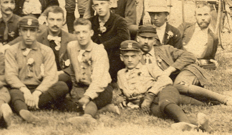This photo captures the Ohio Division of the League of American Wheelmen. In the summer of 1887 they met in Mansfield for revels and events before their annual group adventure trek.