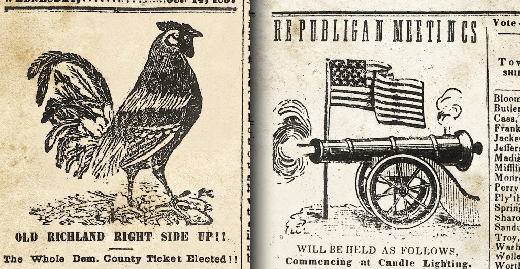 In the 1800s there were no ‘party headquarters’ in Mansfield, the home base and focal ground zero of each political wing was located at the offices of the newspaper that represented their party. For the greatest part of Mansfield’s history there were always at least two newspapers in town, the most prominent pair of them duking it out in the public newsprint forum representing the two principle national parties.
