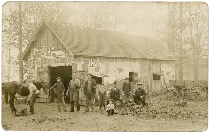 The ‘maintenance garage’ during the age of Horse Power was the village blacksmith, who kept all the horses roadworthy. This blacksmith shop was somewhere between Shiloh and Olivesburg. The photo was taken in a year when the Ringling Circus came to Mansfield, between 1906-1915.