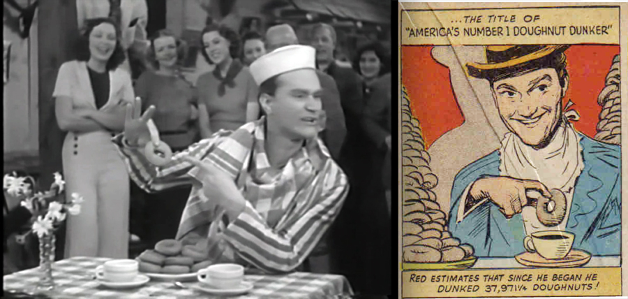 Red was footloose enough to land anywhere he could get a spot on the stage, and those early years had him in Kansas City at a burlesque theater; and doing comedy routines for 6 hours at a stretch during Depression Era “walkathon” competitions: as contestants proved their endurance by walking hour after hour, Red entertained the audience. These marathon performances gave him the time and experience to develop his early vaudeville routines and characters—some of which stayed with him to the end of his career.