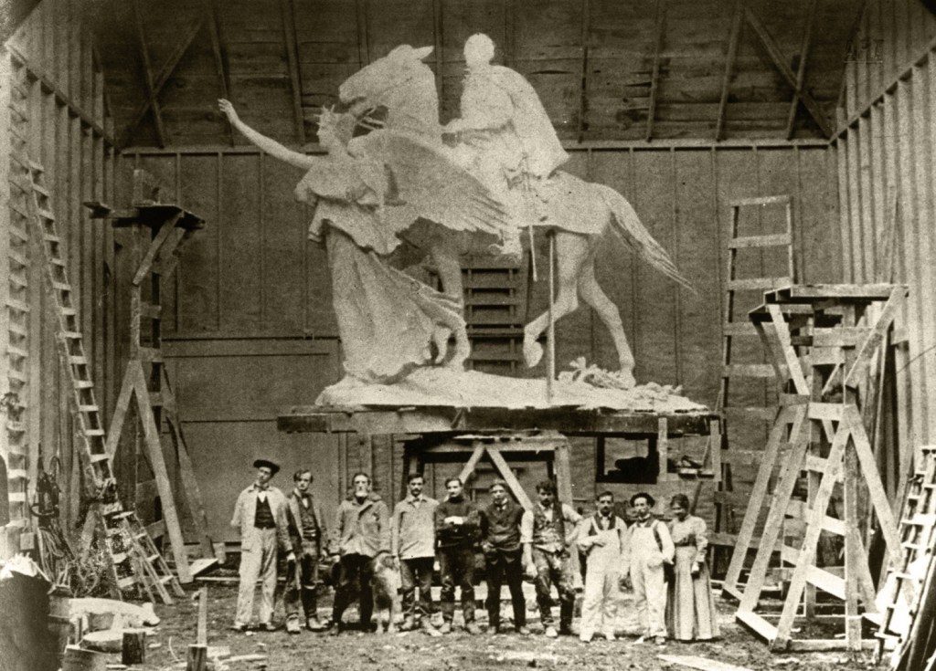 When he was commissioned to create a public monument to honor Lizzie’s famous war hero uncle, St. Gaudens chose to depict the man riding a horse led by the allegorical figure of Victory. The statue was many years in the making, with several version and variations along the way, but when it was completed there was no question in the minds of Lizzie’s friends as to whose face the huge Victory wore.