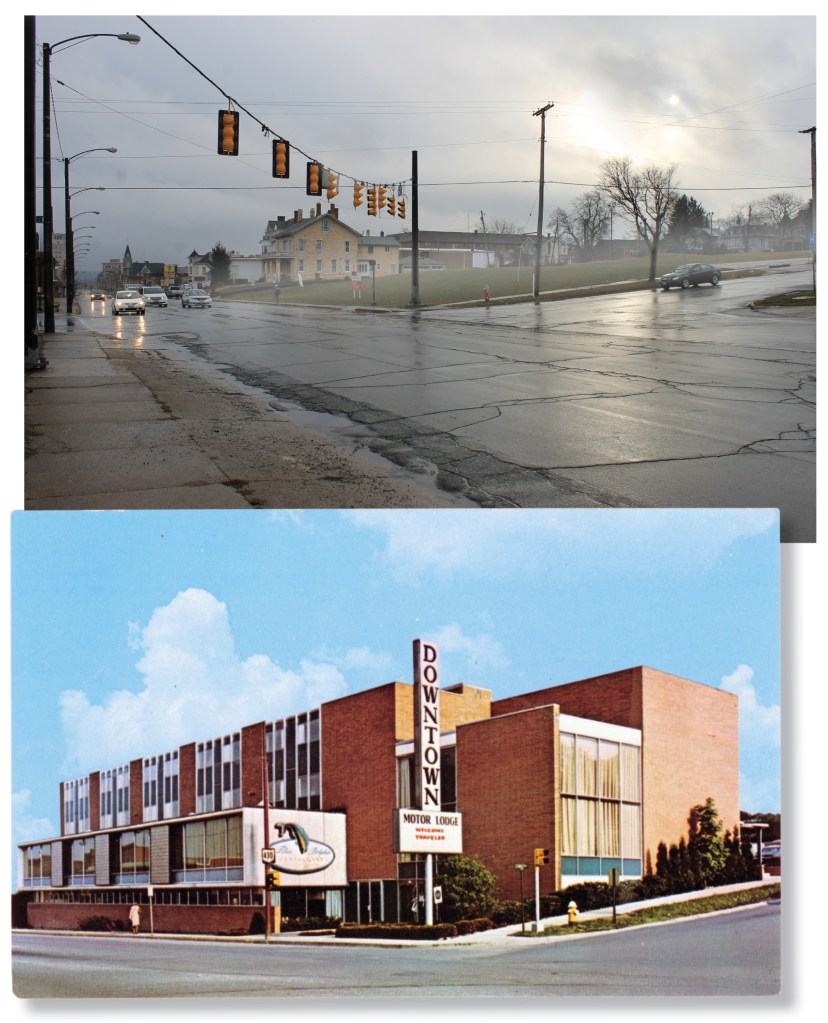 I went past that corner today and the air was just foggy enough to blur the lines of the streetscape. The Hotel is long gone, there is a grassy knoll and a piece of parking lot at Park and Sturges. Even with all that open space I still see the hulking mass of brick and glass leaning out over the street.