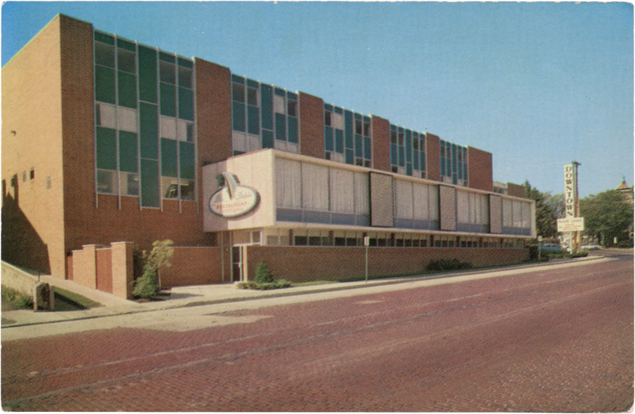 When the hotel was built in the early 1960s it was called the Downtown Motor Lodge, but we all called it the Blue Dolphin because of the sign out front, and even from the first day it opened there was a ghost who dropped into the Main Lobby around 2 AM. She was said to have been from prior ages when the corner lot site on Park Avenue West was occupied by the home of the Weaver family.