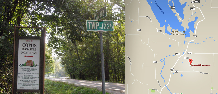 The Copus Hill Monument is not far from Charles Mill dam: off St. Rt. 603 on Township Road 1225