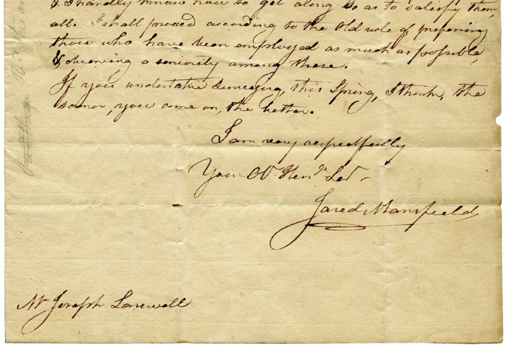 Jared Mansfield had no particular aspirations to inspire history: he lived a humble life in his community as a teacher. He had a mind that never quit however, working the angles of math, and while he earned his living at a school in New Haven CT, he wrote a series of Essays, “Mathematical and Physical.”