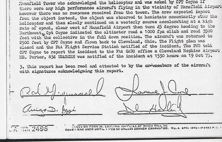 The Captain of the helicopter that night was Larry Coyne, and his name is often used as a reference to the event, which is known as the ‘Coyne Incident’ or the ‘Mansfield Encounter.’