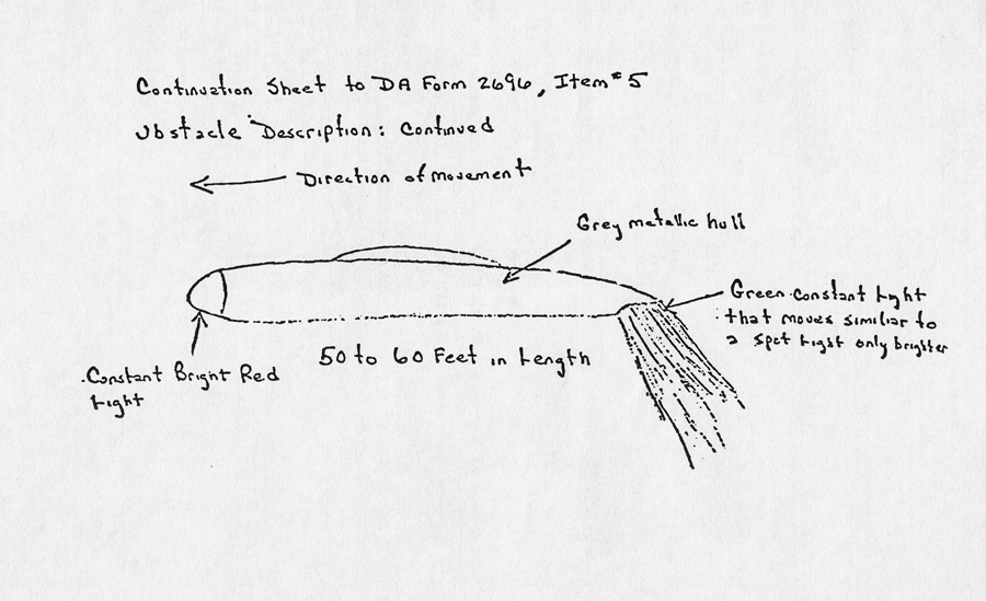 Within moments it became obvious to them that the odd light was in motion, and that it was moving very quickly toward the helicopter on a collision course. The Captain took immediate evasive action, diving his aircraft out of the path of the unidentified object that was closing at a terrific speed.