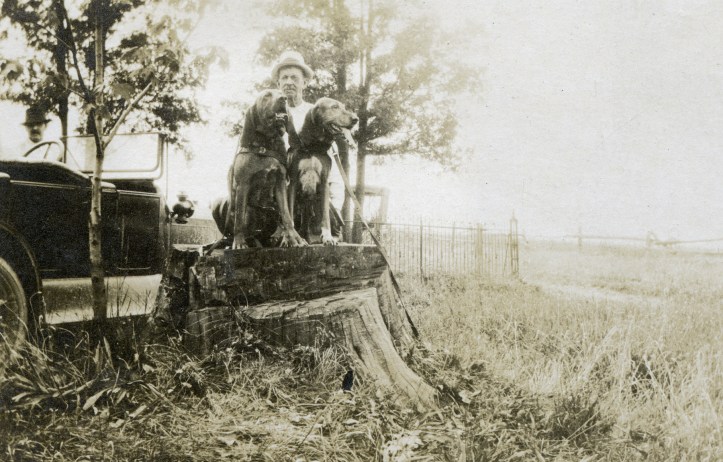 One of the dogs in this photo is the Doctor’s fabulous hunting hound, and it is believed that the Doctor is the man in the background next to the car.