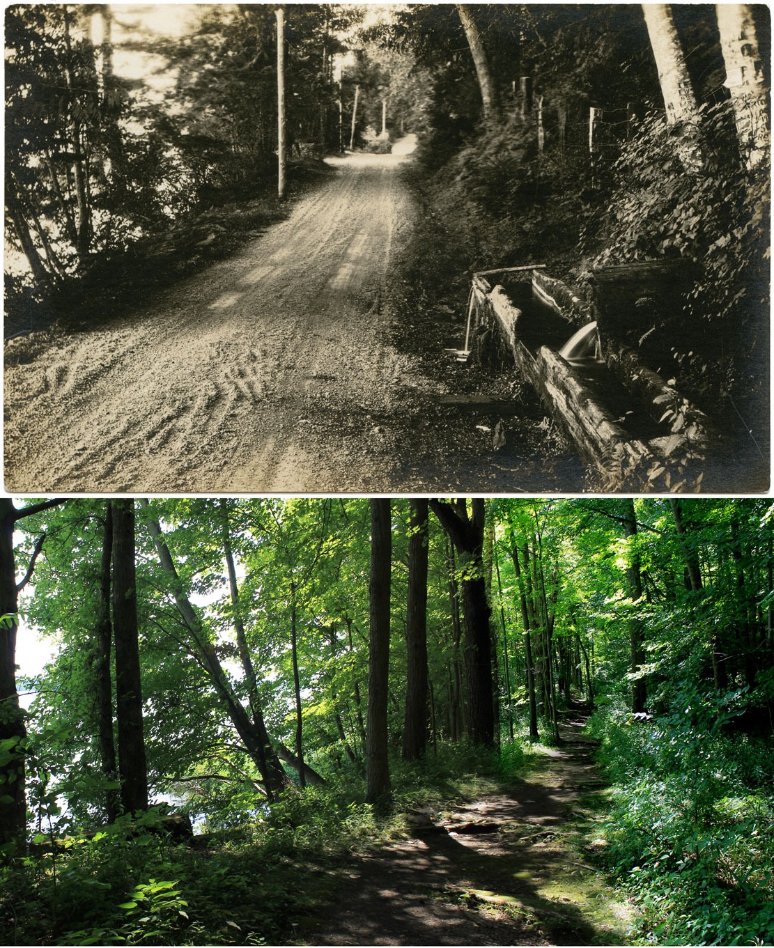 The bridge is long gone—the embankment and abutments now many feet underneath the lake. There are a few photos of Shady Grove, but it was a low-lying glen that disappeared under the water in the 1940s.