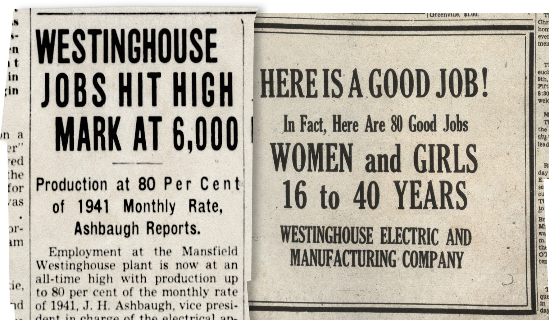 “You see, everything changed during the war.  Everyone was afraid that all the upheaval was going to kill the city’s local job market, which had been so precariously balanced for survival during the Depression; but what happened was exactly the opposite.