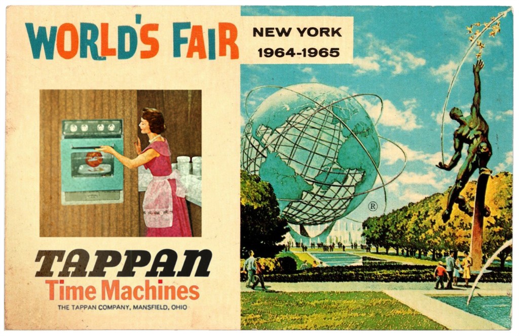 The Tappan exhibit was very practical and hands-on, located inside the Greyhound Bus pavilion where diners could select pre-packaged courses from a variety of American regional cuisines, and then heat up their meals “at the push of a button” in a Time Machine: the oven that saved every housewife hours of toil.