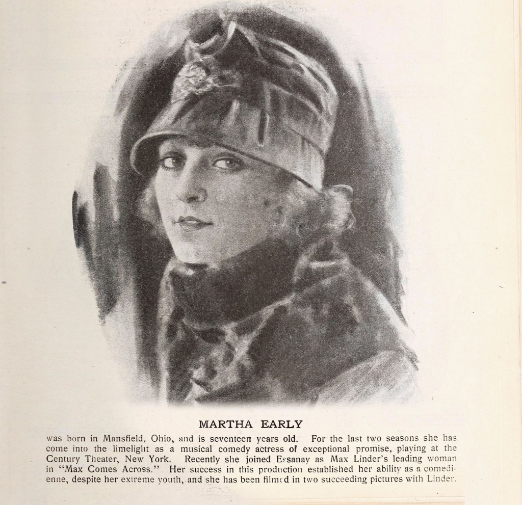Martha’s movie career began in Chicago where the comedian Max Linder turned away a hundred leading ladies from his silent short films until he chose her to play opposite him. She left New York and rode the train to Chicago as Martha Erlich, but 1917—right during WWI—was not a good time in this country have a German name, so she signed into the credits with an Americanized version of the name: Martha Early.