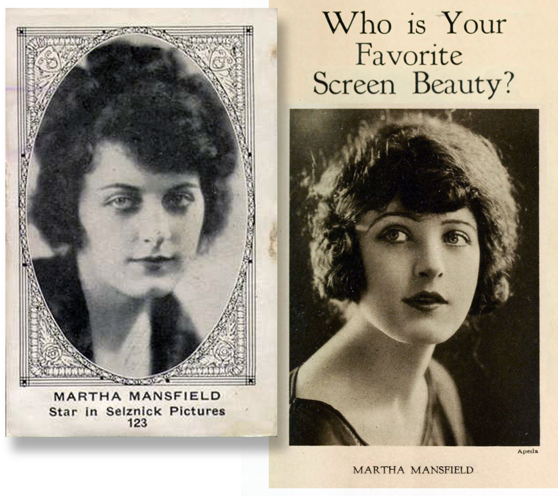 Martha Mansfield appeared in 31 movies between 1917 and 1924. A half-dozen of them can be seen on YouTube at the moment, and there will be more in the future, though several of the films did not physically survive the last century.