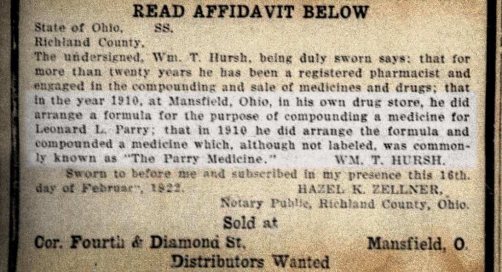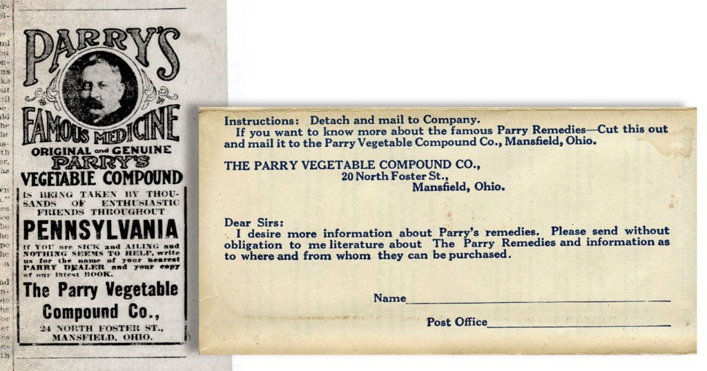 Parry had been making his Vegetable Compound since 1910, several years after the U.S. Congress had cracked down on Snake Oil elixirs by enacting the Pure Food and Drug Act in 1906.