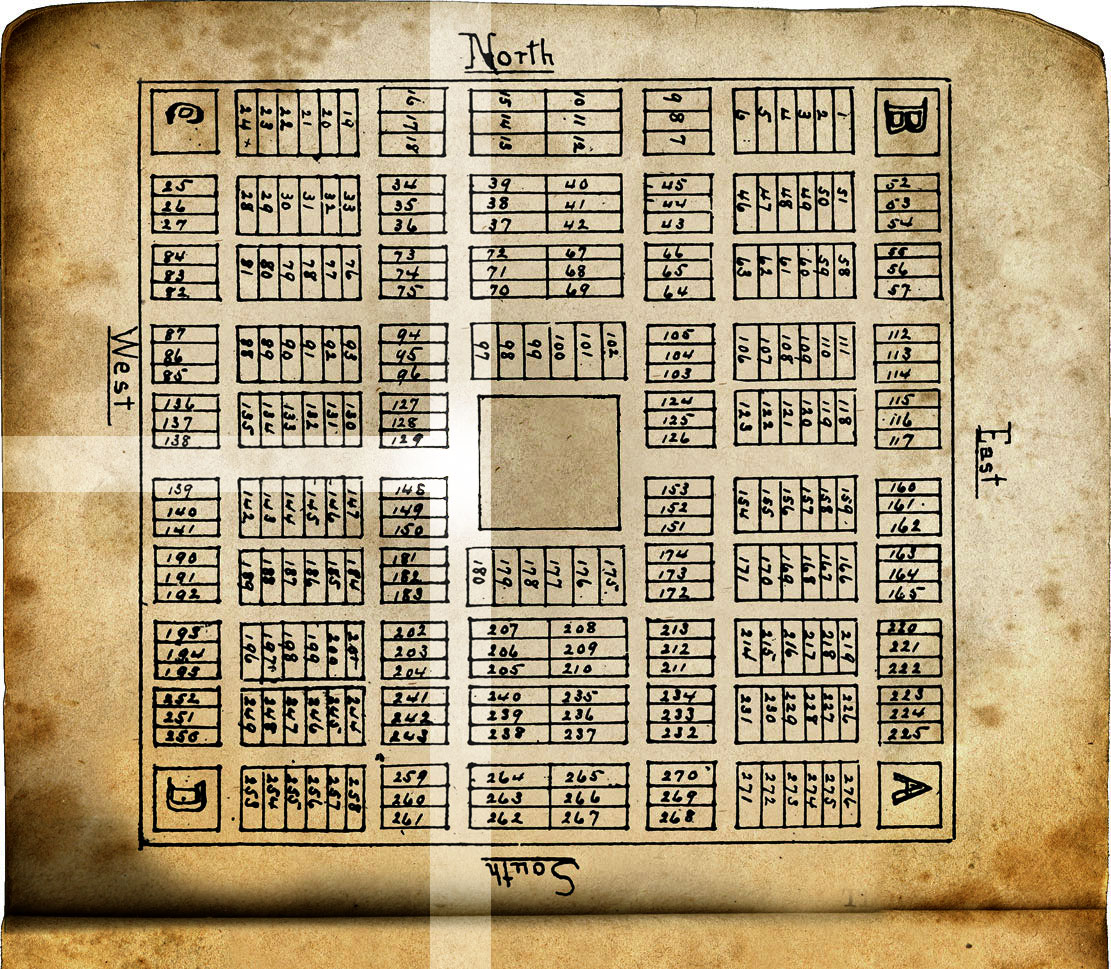 The other sides of the Square—pointing East and West—were considerably shorter, serving only to contain and define the Square by connecting the two principal thoroughfares.