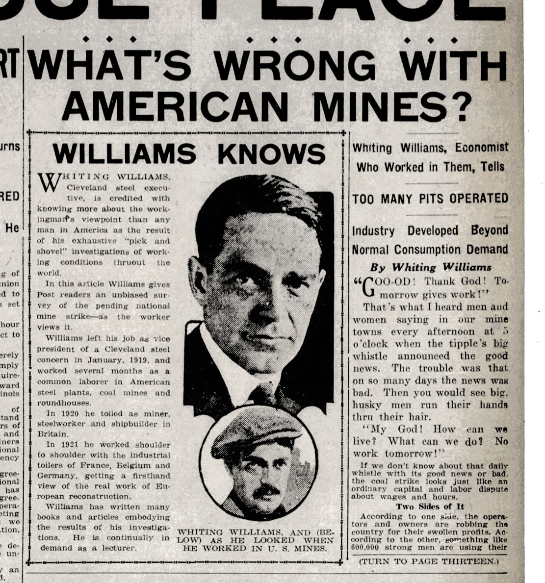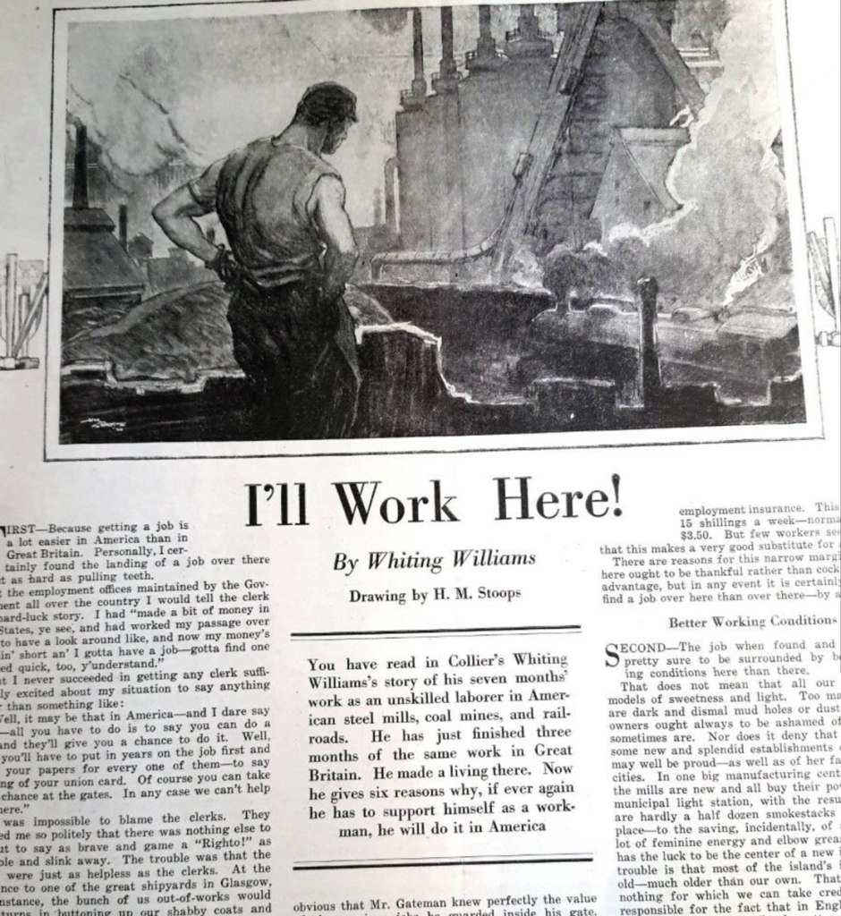 People who study the history and development of industry in America—and particularly the evolution of relations between Management and Labor through the last 150 years—invariably come to focus on Whiting Williams, because, at a critical moment on the timeline, it was he who altered the course of how factories deal with their workers.
