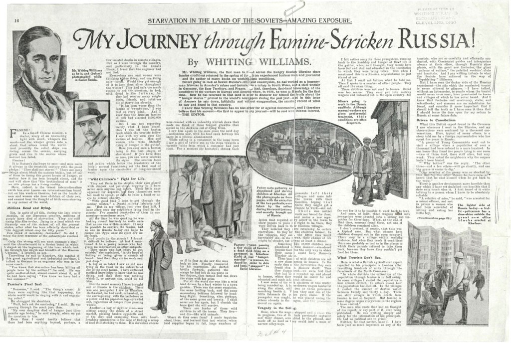 After he graduated from Shelby High School in 1894, Williams had the transformative experience of meeting some of the most influential people of his generation who were engaged in transforming social consciousness: like attorney Clarence Darrow, the author Jack London, and America’s Nobel Prize-winning social pioneer Jane Addams. All of these icons of social change spent time at Oberlin College when Whiting Williams was enrolled there.