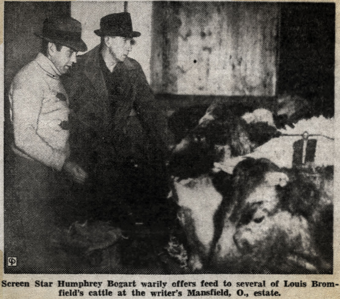 Often the News-Journal caught wind that Bogie was in town, and let word slip so that reporters from all over the state converged on the Big House. Bogart, however, had come to the country to get away from all that. One time in 1942, a news writer cornered Bogart at the farm and thought he would get an exclusive interview because Bromfield invited him in to the house for drinks. When he was seated in the living room, Bromfield and Bogart laid out the rules: the reporter was welcome to stay and drink all night if he wanted, but the first time he posed a question they were tossing him out the door.