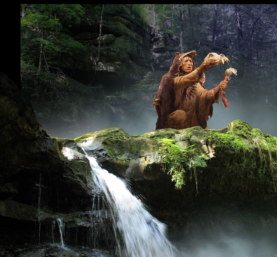 Far more probable—at least from the standpoint of opportunity—is that the Singing Man was carved by an artist of the Adena/Hopewell era of prehistory, who had over a thousand years in which to find the Falls, and hallow the sacred grounds with an earthen mask.