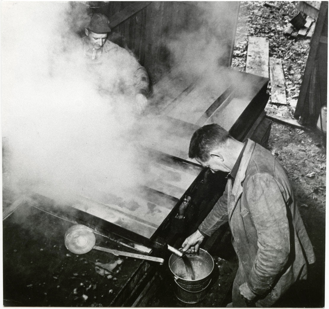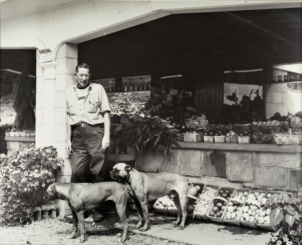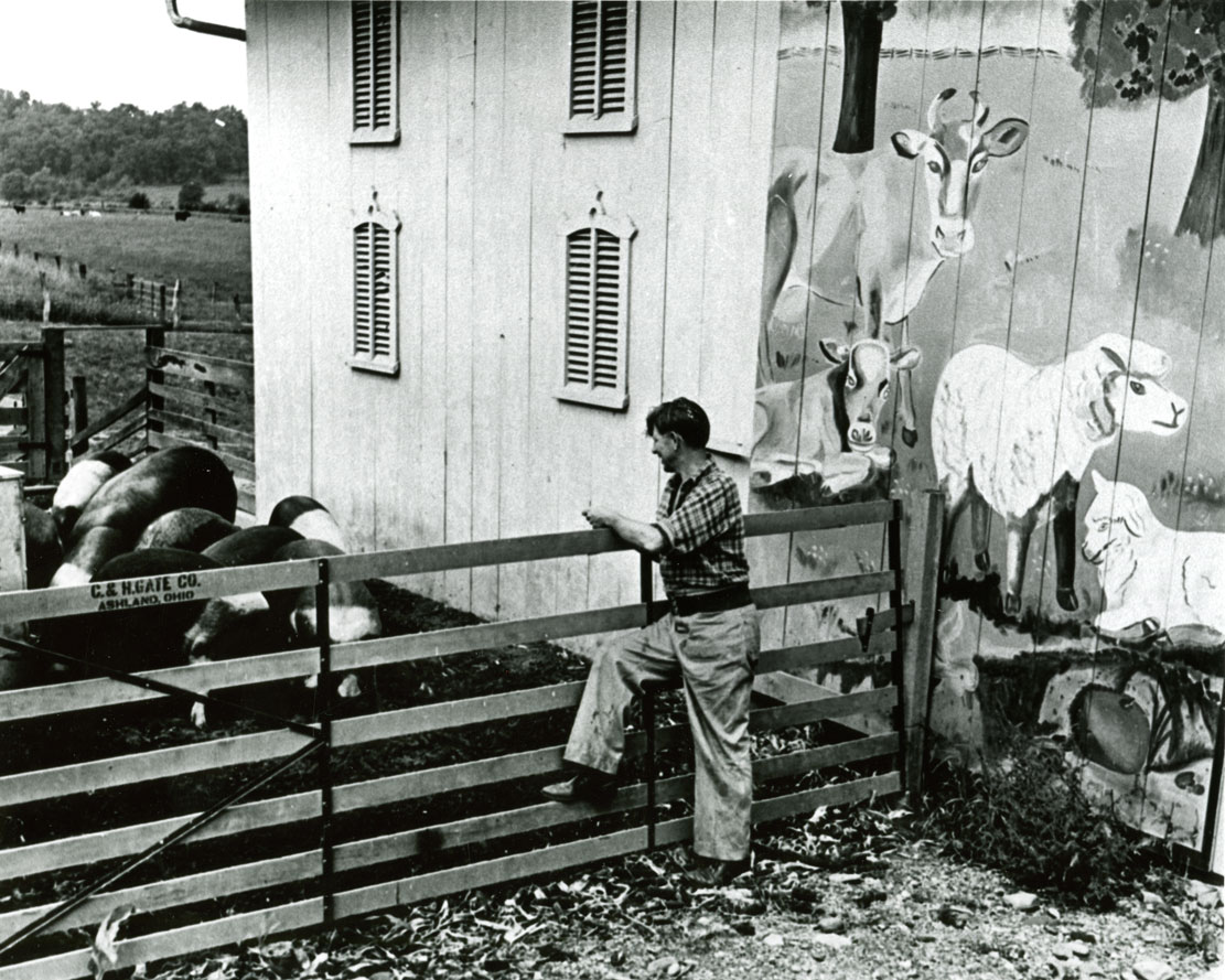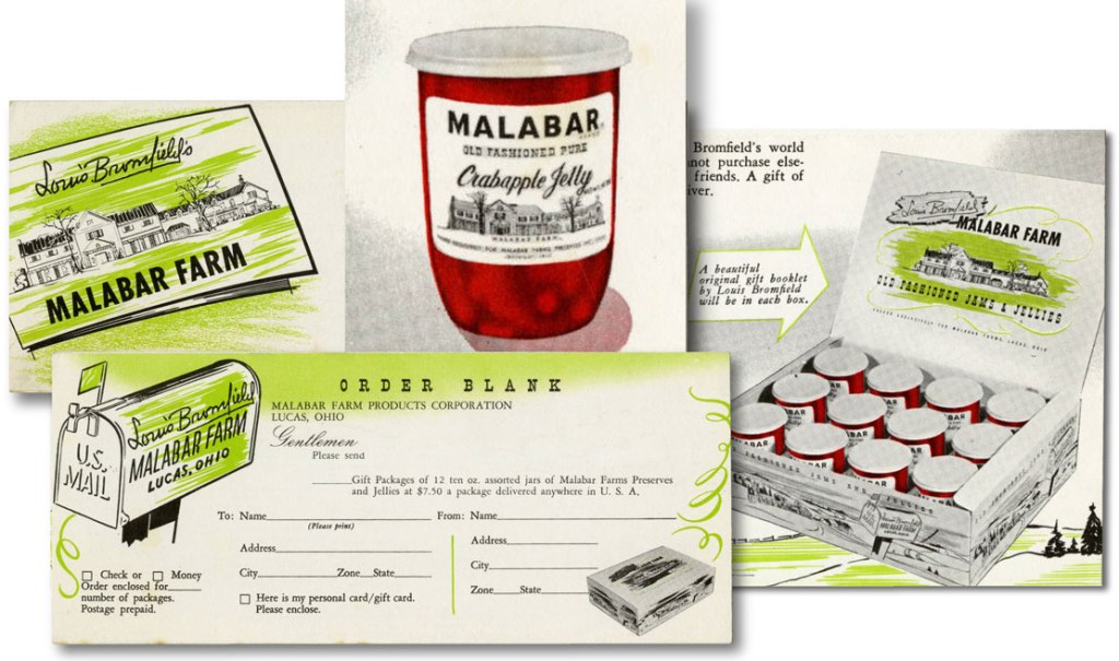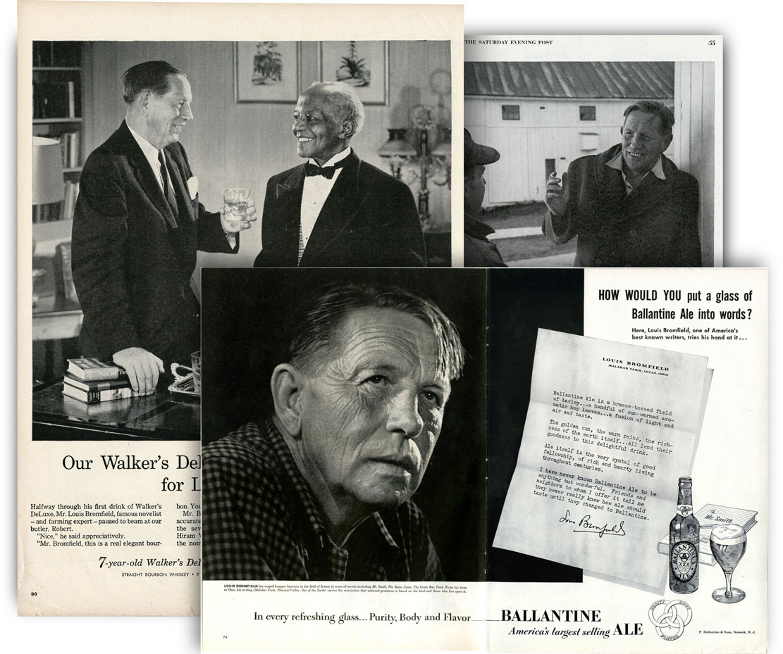 There was a time in the 1940s when Bromfield’s endorsement for anything agricultural was a virtual guarantee for sales. His publisher in New York was hardly going to pass that up, so he commissioned a farmer portrait to put on the dust jackets of Louis’ best-selling novels, by an artist renowned for his White House portraits of Presidents.Bromfield, of course, never wholly abandoned his dream of living in a nineteenth-century farmstead, and as a tribute to former times he commissioned a Barn Mural painted on the Main Barn. It was straight out of his childhood memory of unforgettable barns from the Richland past.There was one element of Bromfield’s ‘self-sufficient farm’ fantasy that he held onto and cherished to the end of his life—turning maple sap to sugar every spring on the ridge above Switzer’s Creek.In his last years at Malabar Farm, after decades of sharing his passion with the nation, Bromfield wanted to literally share the fruits of his labors with his neighbors by building an incomparable roadside Produce Stand on Pleasant Valley Road.In the mid-1950s, as Bromfield’s name slowly faded from the national spotlight because of changing tastes in American literature, his legendary income sagged. New methods of marketing Malabar Farm had to be developed. One of these was selling jams and jellies in a fashionable New York City department store and by mail order.Bromfield bolstered his income in the 1950s by selling his face to advertisers in the magazines that once carried his stories.In spite of Bromfield’s national prominence, what he longed for most was to be a good neighbor, as was his father before him, and ‘one of the gang’ among local farmers. Here he is at a meeting of the Lucas area grange where he declined to sit at the head of the table.It would be possible to estimate the vast distances Bromfield traveled for speaking engagements all over the country by collecting newspaper articles from dozens of states documenting these trips.