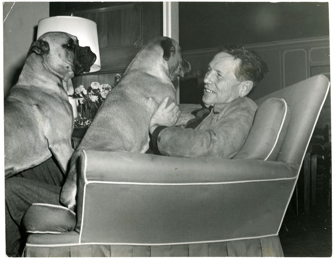 Here is Louis with his farm wheels and one of many farm dogs. This was actually a news photo released to U.S. media in 1950, and it’s worth noting that his PR guy and best friend George Hawkins had died a year or so earlier and wasn’t there to make sure Lou smiled for the camera.