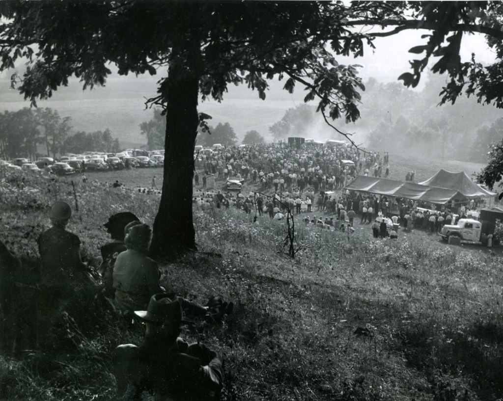 It was Hawkins who began calling it Mt. Jeez. This photo from the top of Mt. Jeez gives an idea of how the U.S. Government embraced the hospitality of Malabar Farm with an event in 1950 for Senator Taft, who arranged to have Bromfield testify before Congress. It was well known in political circles that if Dewey had defeated Truman in the 1948 election, Bromfield would have been named to the President’s Cabinet as Secretary of Agriculture.It was important to Bromfield’s message that his Conservation practices be easily accomplished by any farmer on any farm of any scale. Yet, the scale of expansion and entertainment at Malabar Farm was such that it could hardly have existed without the auxiliary income he derived from his popular novels.