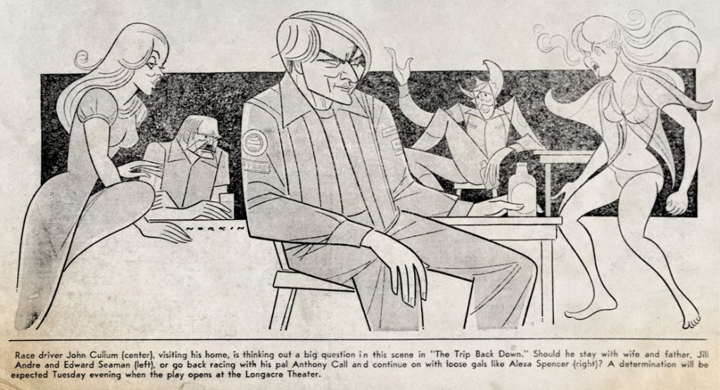 His first big play—the one that hit squarely on Broadway—was the one that tapped most honestly and completely his Mansfield background. It is even set in Mansfield, literally. The characters in The Trip Back Down actually bear the family names of Mansfield folks he grew up with.