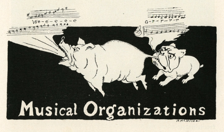 Even from the very earliest works, his drawings captured expressive faces of the critters he knew with a characteristic humor and personality. When he graduated from Mansfield High School in the Class of 1912, the Manhigan contained his first published illustrations… all of them cartoon farm animals.