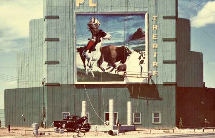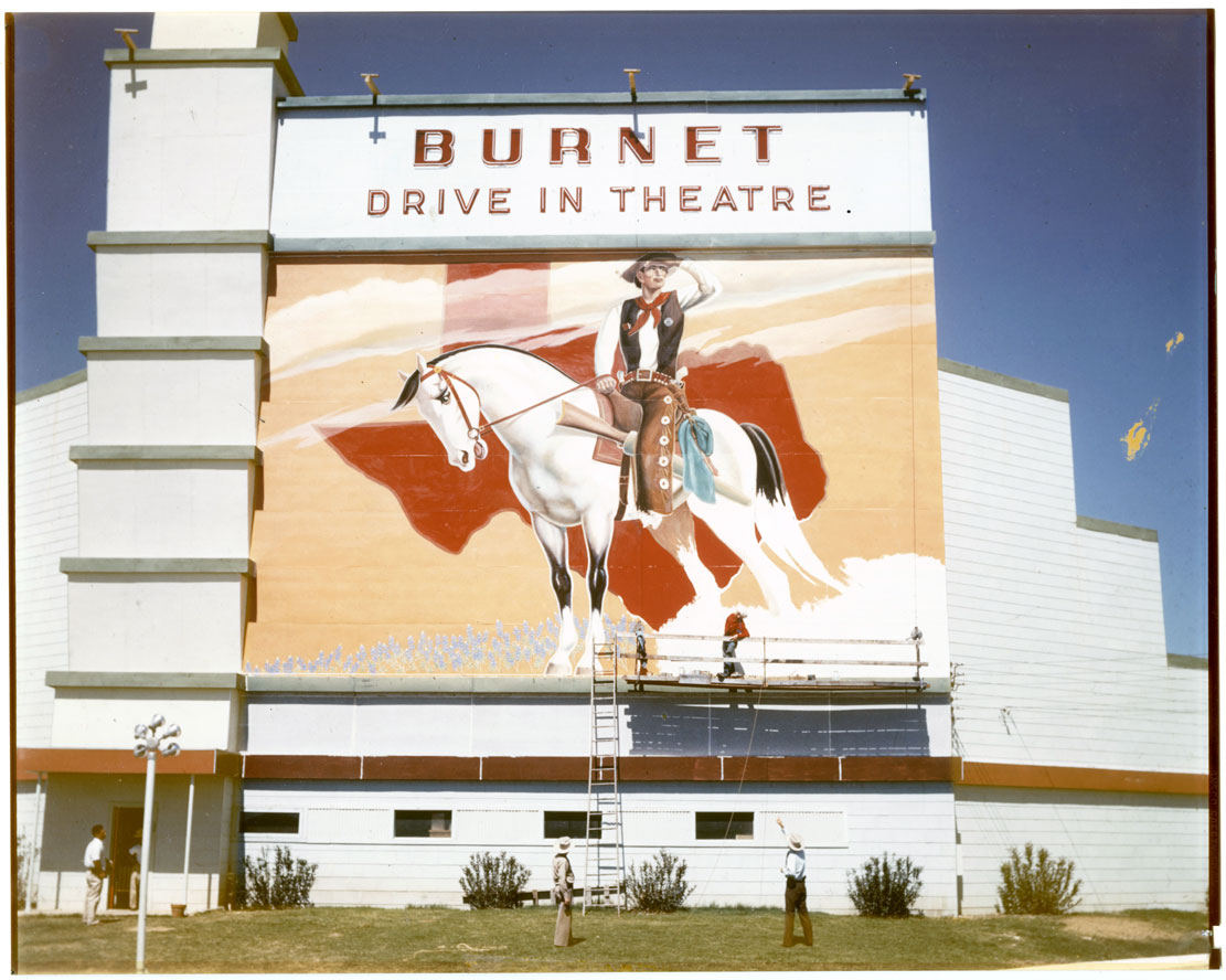 I never knew what happened to him until this afternoon when I discovered his animals painted 30′ x 40′ on the fronts of drive-in movie theaters in Texas. He started a business called Murals For America and spent the last dozen years of his life painting his animals as huge as his grand imagination.